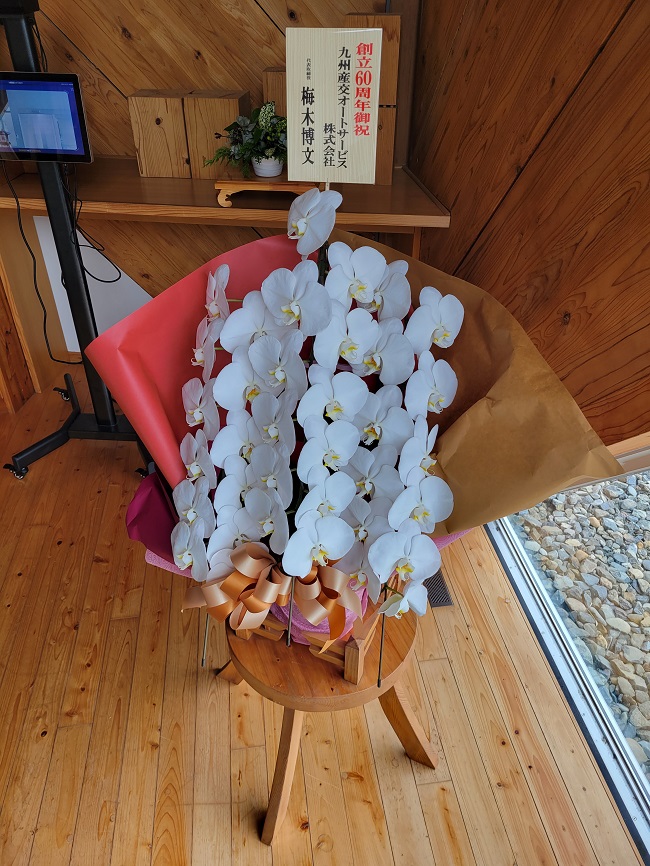 卒業生が九州産交オートサービス(株)にて頑張っていらっしゃる高校の周年行事には『胡蝶蘭』を贈呈されているという事です。本校は創立60周年を迎えましたのでこの度貴重な『胡蝶蘭』を贈呈していただきました。