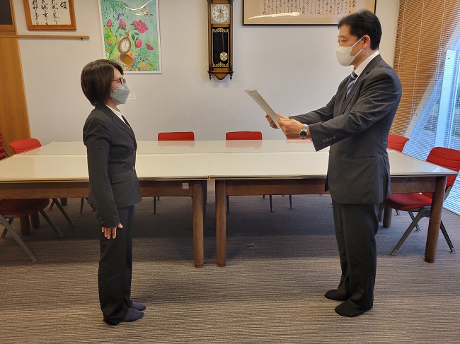 11月24日(木)15時から本校の校長室においてフレッシュ・キャリア部門の『令和4年度熊本県優秀教職員』の表彰式が行われました。