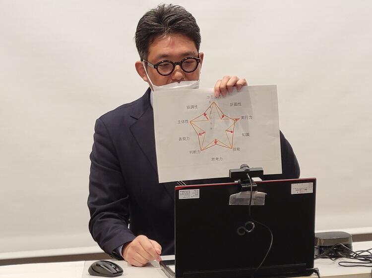 後半では、「球磨工議会議員選挙」と称し、2学年の先生方に候補者役として公約を掲げてもらい、演説をしてもらいました。