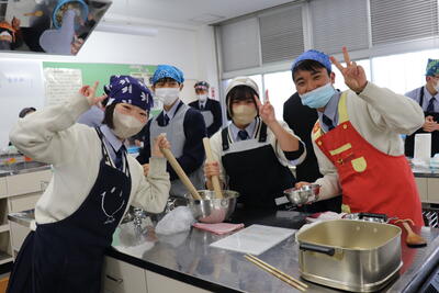 今回の実習では、調理をしながら郷土の食材や料理を育んだ先人の知恵や文化に思いをはせることができたようです。