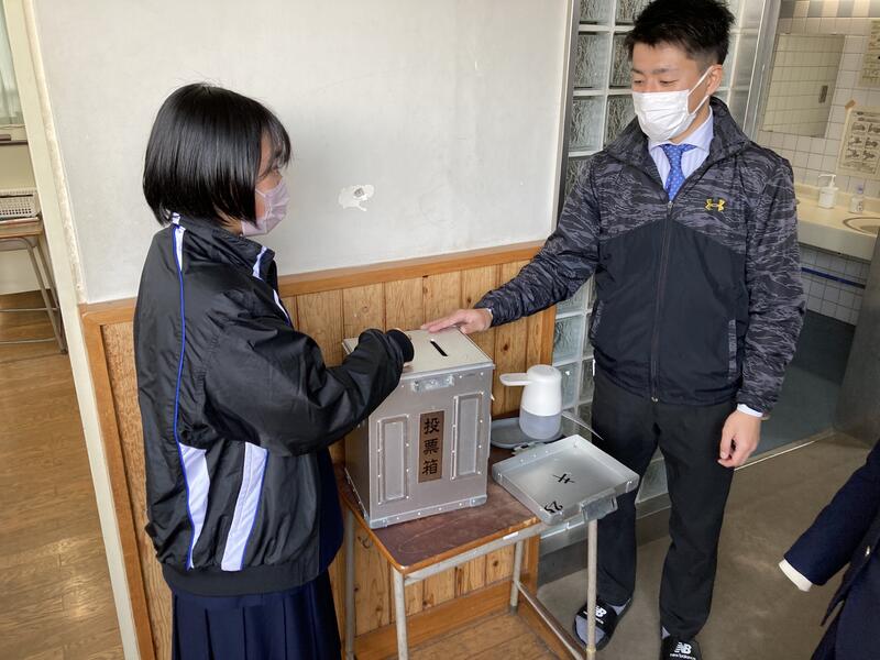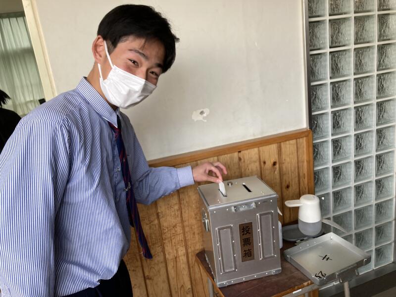 演説後には、実際に選挙で使用される投票箱を用いて投票を行いました。