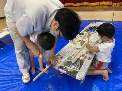木材でのものづくりを通して交流することで、生きる力を育む目的で活動しています。