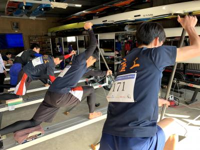 エルゴ大会とは、カヌーの練習で多く使用されているエルゴマシーンを使ってタイムを競い合います。