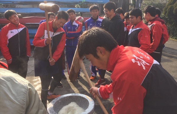 12月30日、艇庫にて人吉球磨カヌー部後援会主催「餅つき会」がありました。1・2年生は練習納めをした後合流し、3年生・保護者も交え楽しく餅をつき、その後みんなでその餅を頂きました。3年生にとっては、卒業前の思い出の一つになったものと思います。1・2年生には、今後もこの餅のように来シーズンに向け粘り強くトレーニングに励んで欲しいと思います。