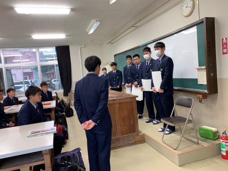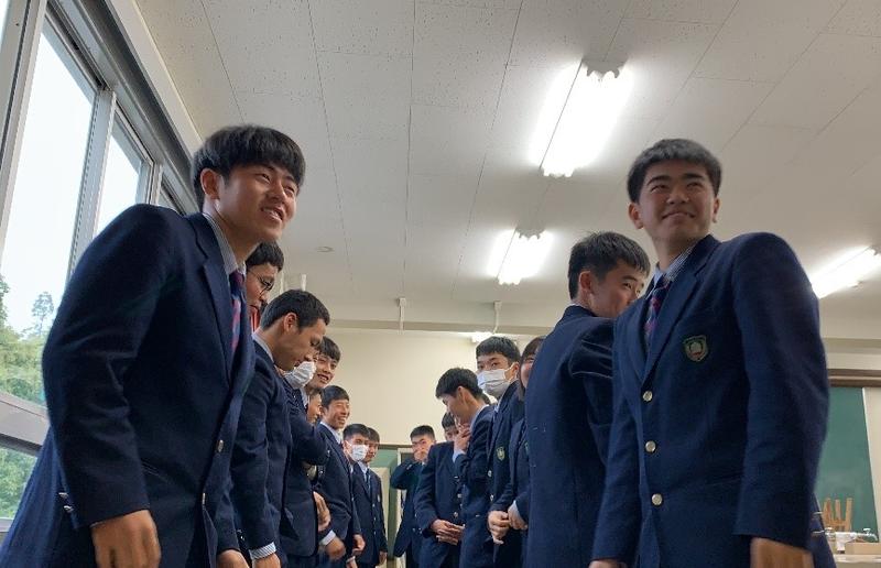 3年生1人1人から話がありました。中でも、印象に残っているのは立岩颯仁(3MB)の言葉です。「10言われたことを10やれとは言わない。」という言葉から始まり、「その中でも自分の身になることはきっとある。素直に受け止めないと、もったいない。」という話をしていました。この言葉からきっとこの3年間納得いかないこと、腑に落ちなかったことたくさんあっても、全て素直に受け止めて、自分なりにかみ砕いて、自分のものにしてきたのだろうと考えさせられました。また、「仲間の存在を大切にすることが大切だ」と皆口々に言っていました。3年生は6人とメンバーが少ない中で、仲間を大切にし、尊重し、協力し、3年間過ごしてきたのだなとほんの数ヶ月しか彼らを見ていない私でも感じることができました。インターハイ、国体と結果を残してきた3年生から言われたこの言葉、1,2年生に響いていて欲しいと強く思う程良い話をしてくれました。この話を素直に受け止め、自分なりにかみ砕いて、自分のものにしてほしいなと思います。