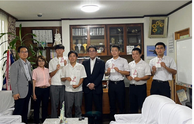 令和 6 年 6 月 26日(水)に山江村役場にて全国大会等出場激励金の交付が行われました。