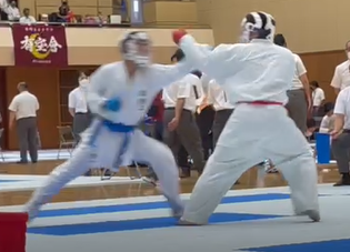 星野佑磨の戦い!前拳がさがってるぞ!オイ!・・・と思いきやノーモーションで突きが出る!