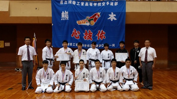 団体組手高校男子 Aチーム(2E上田、2MB桑島、2C若松)2位