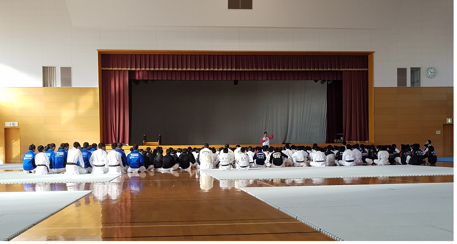 12月5日(土)佐賀県の佐賀のへそ・ふれあい交流センターで高体連の錬成会がありました。午前中は近畿大学工学部監督の松本和昭氏からの指導を受け、午後は練習試合を行いました。