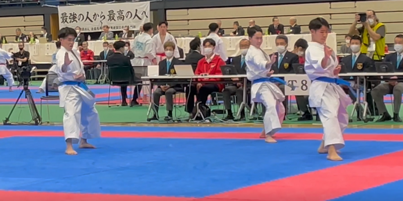 さぁ、いよいよ出番の球磨工男子団体形!緊張しています!