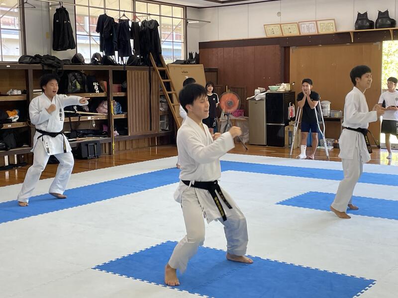 そんな暑さに負けず、ガンガン稽古する空手道部!