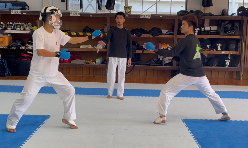 この日は空手道部OBで現東京消防庁員の蔀七実くんたちが帰ってきました!