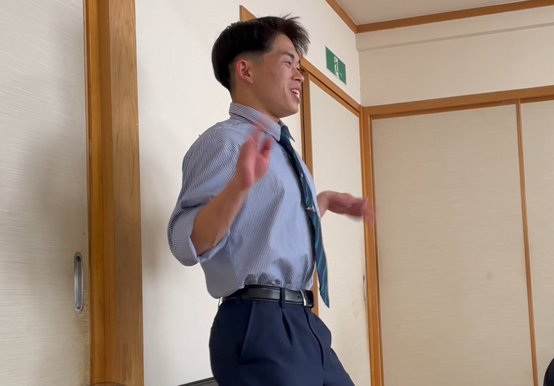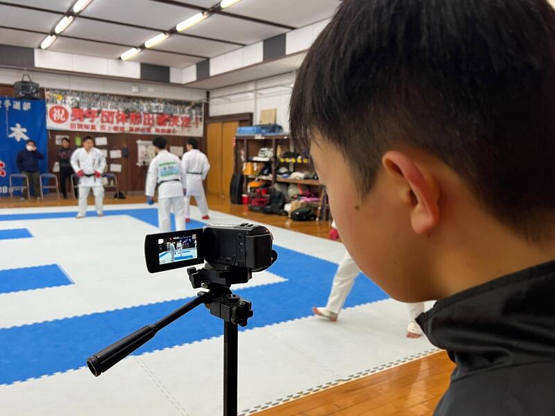 みんなの様子をカメラに収めるマネージャーの横井愼節君