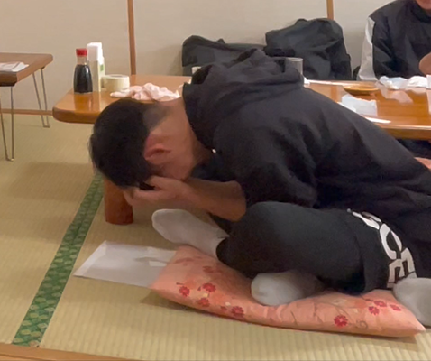 美味しい食事を食べながら、みんなで話したり、動画を見たりしました。最後には卒業生に話してもらい、とても感動的なムードに・・・。みんな涙を流しました。