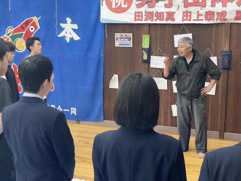 「勝つよな!絶対に勝つよな!総体までのおよそ2か月間は時間があれば空手のことを考えてほしい。相手は同じ高校生だ!絶対に勝てる!負けたらどうする?違う!絶対に負けないって気持ちが大事なんだ!みんなのことを応援しています!」