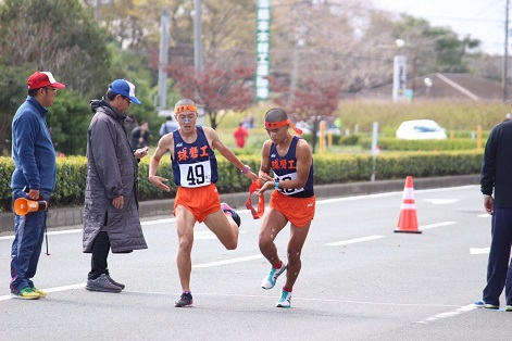 5区 佐々木渉から 6区 椎葉港翔へ           7区 山崎隼太