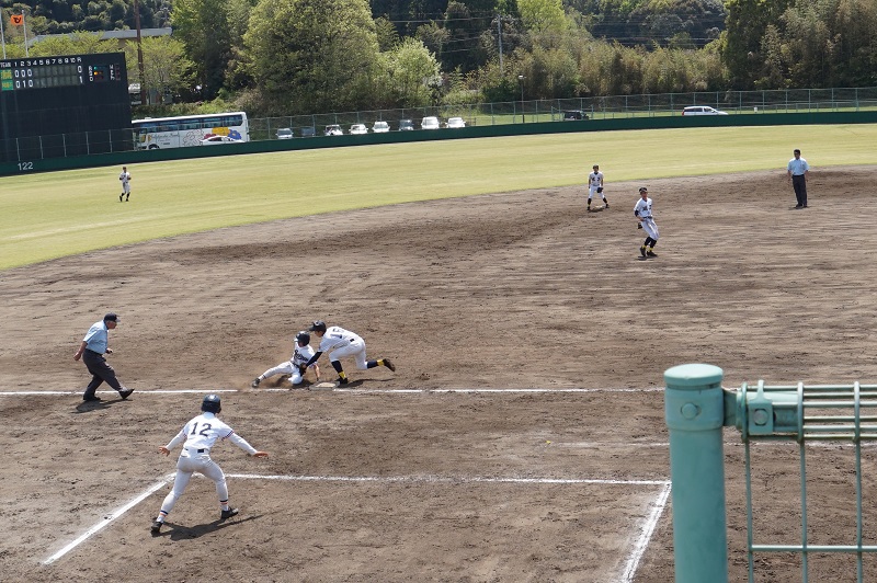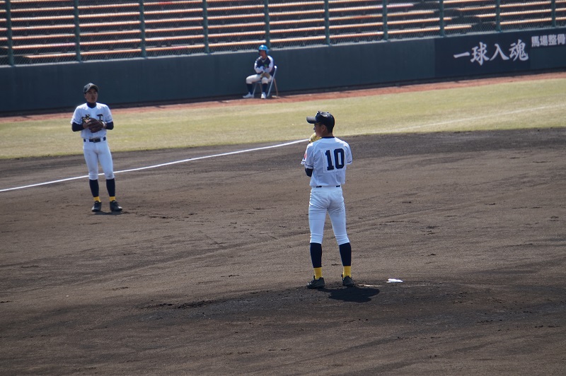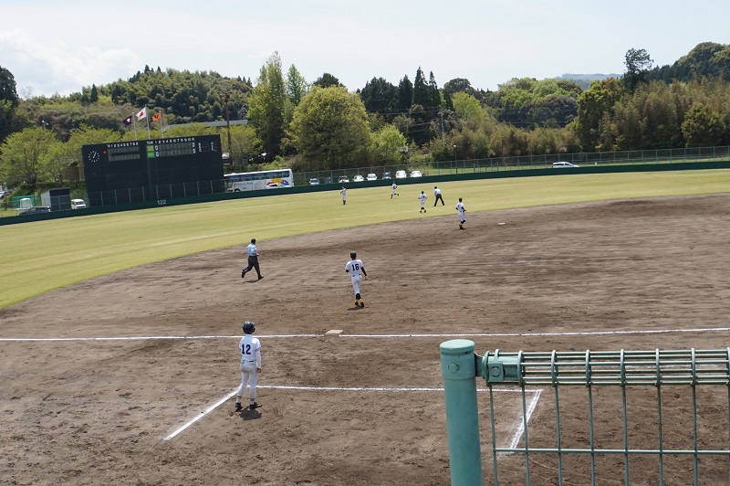 人吉の川上哲治記念球場で試合が行われ、八代清流高校と対戦しました。