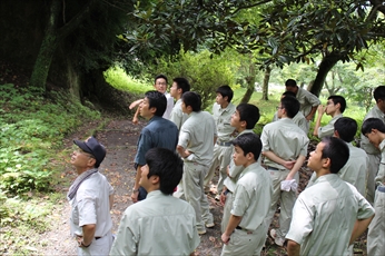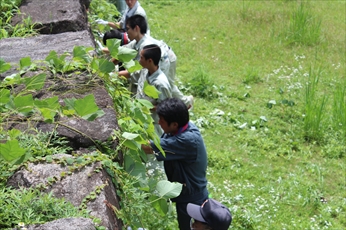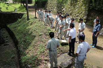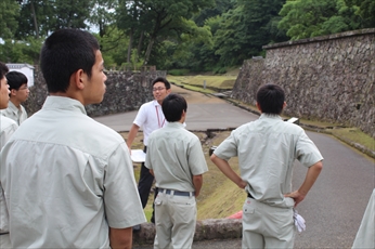 午前中は、城内を歩きながら石垣の積み方や領主の生活の様子を学んだり、
