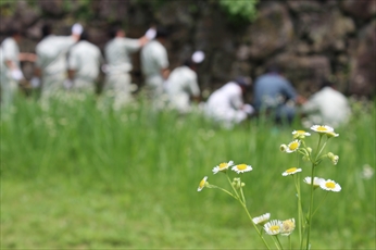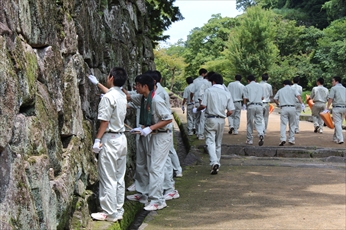 そして午後は石垣にびっしりと生えた雑草と苔の除去作業を行いました。