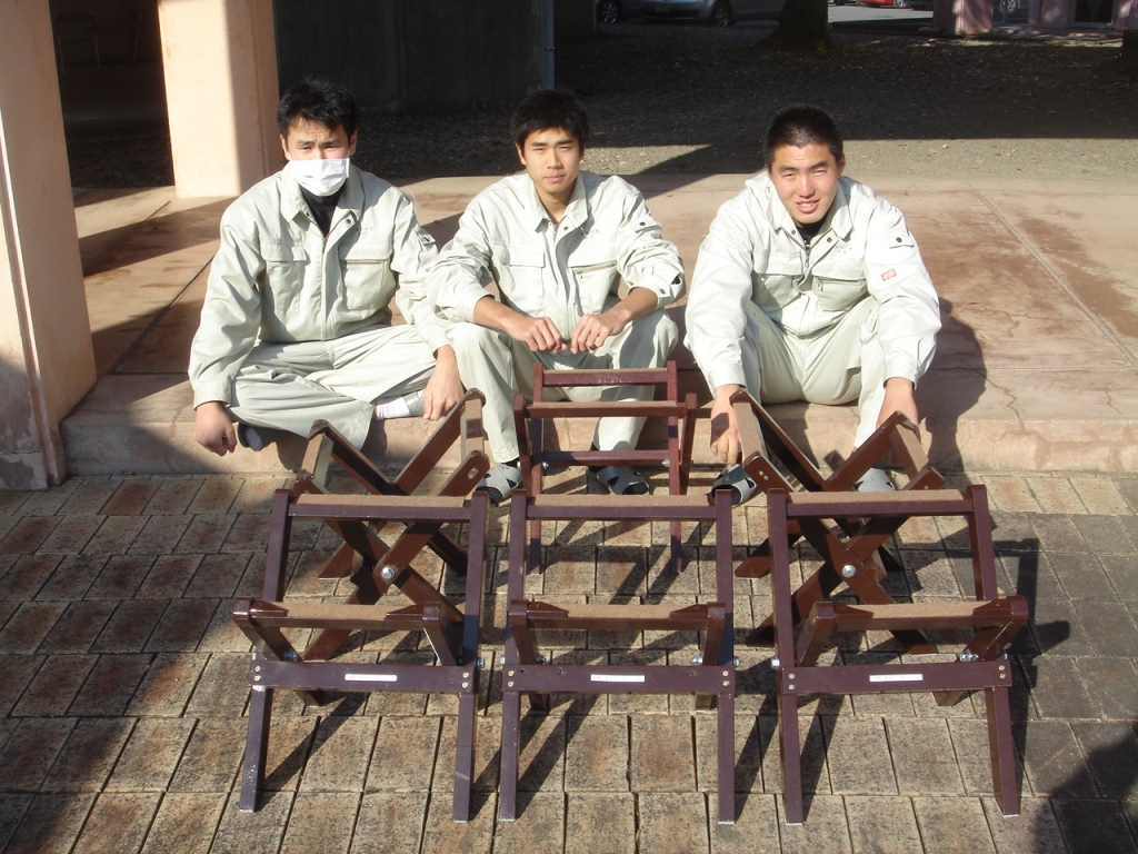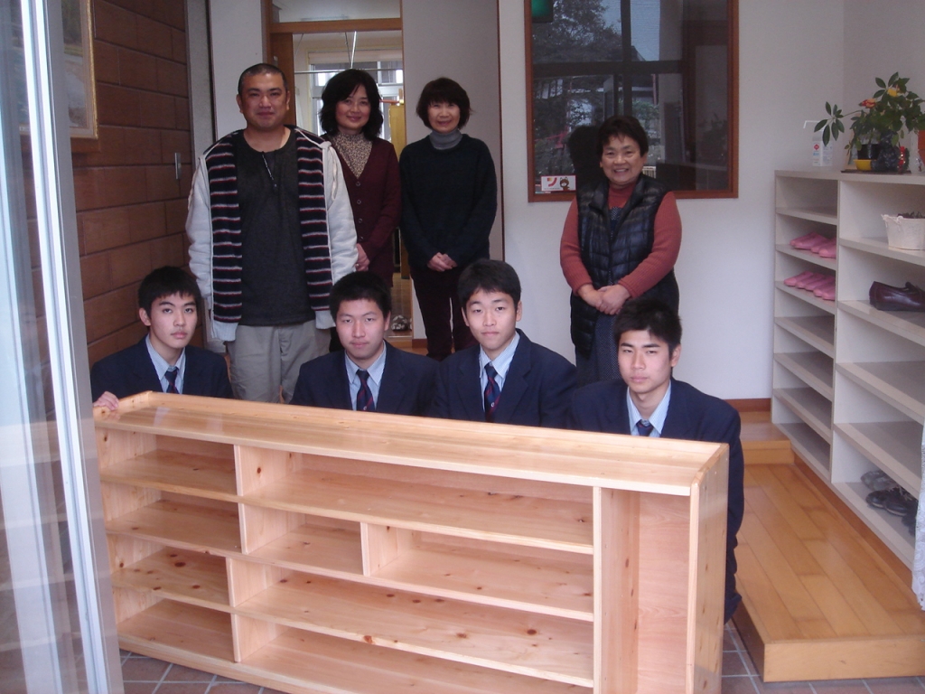 12月11日(木)、課題研究で制作した太鼓の台座と木製の棚を寄贈してきました。