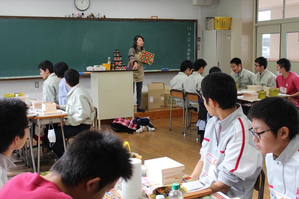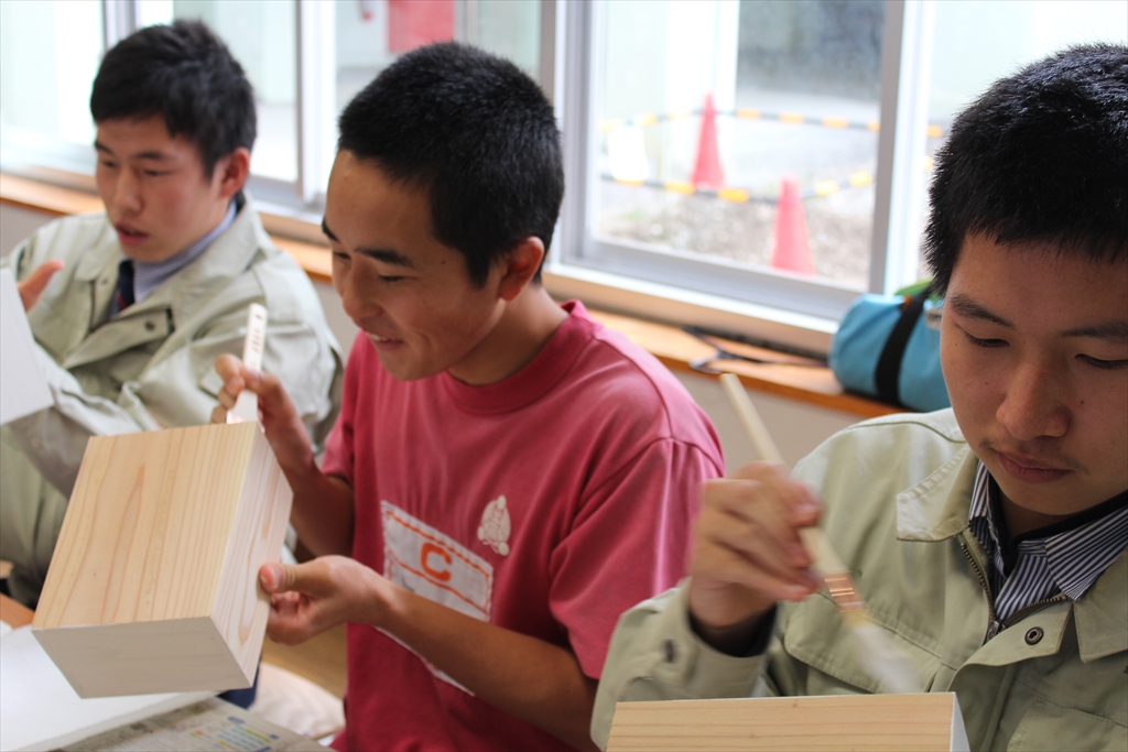 建設工学科3年生が、人吉の民芸品「花手箱」の制作体験をしました。