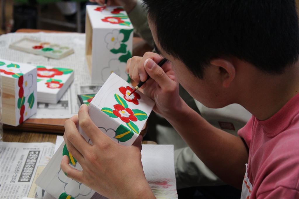 近隣の宮原工芸様にご指導いただき、花手箱を制作しました。