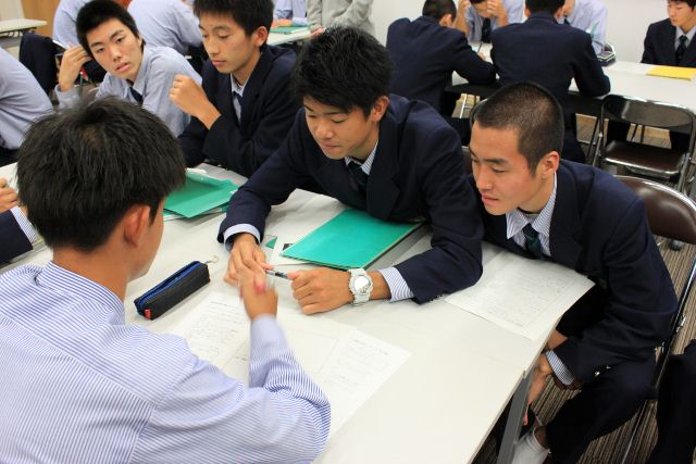 国語科福永先生の研究の一環として『生徒同士の進路指導』を実施していただきました。進路決定を終えた3年生が、進路選択の時期を迎える2年生に対して進路指導を行うという例を見ない取り組みです。教師からではなく、身近な先輩からの指導は、2年生にとってより高い効果を示すのではないかということです。先輩の熱心な指導に、2年生は興味を持って参加していました。期末考査を控える生徒たちにとって、良い発憤材料になったのではないかと思います。