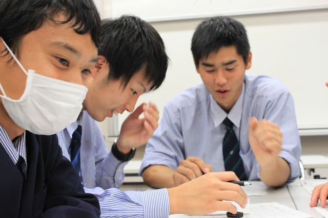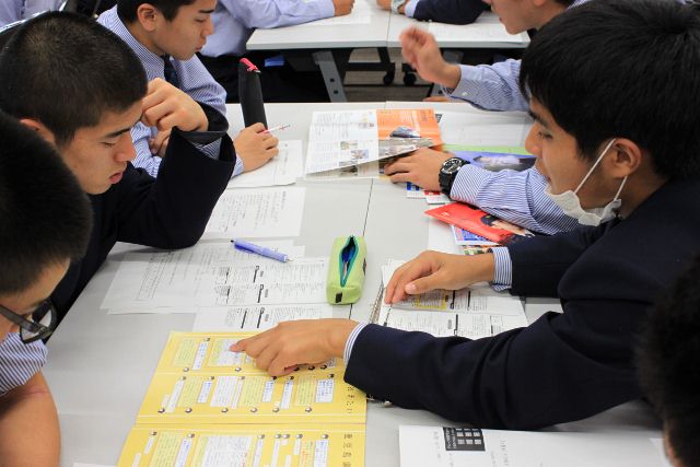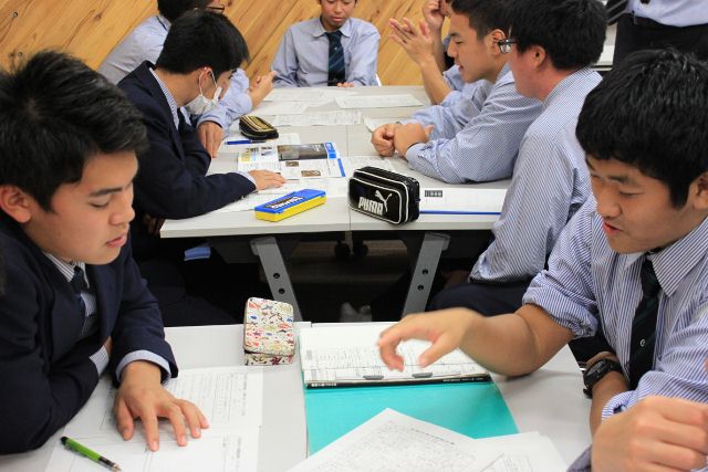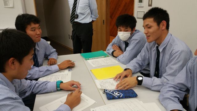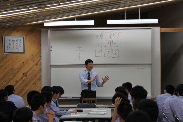 国語科福永先生の研究の一環として『生徒同士の進路指導』を実施していただきました。進路決定を終えた3年生が、進路選択の時期を迎える2年生に対して進路指導を行うという例を見ない取り組みです。教師からではなく、身近な先輩からの指導は、2年生にとってより高い効果を示すのではないかということです。先輩の熱心な指導に、2年生は興味を持って参加していました。期末考査を控える生徒たちにとって、良い発憤材料になったのではないかと思います。