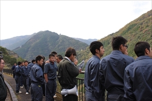 場所を移し、川辺川ダム建設予定地見学 五木村田口砂防堰堤見学