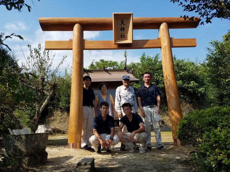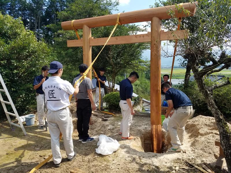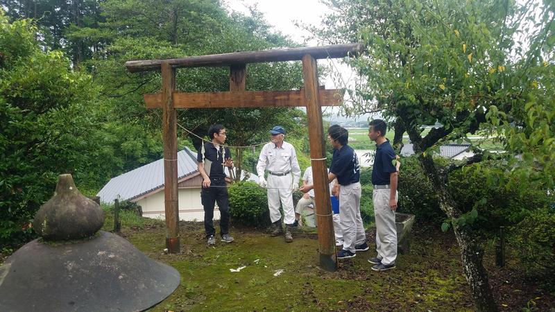 あさぎり町大字深田にある久留須山天満天神の鳥居が老朽化し危険であったため、伝統建築専攻科1年生で鳥居を製作しました。