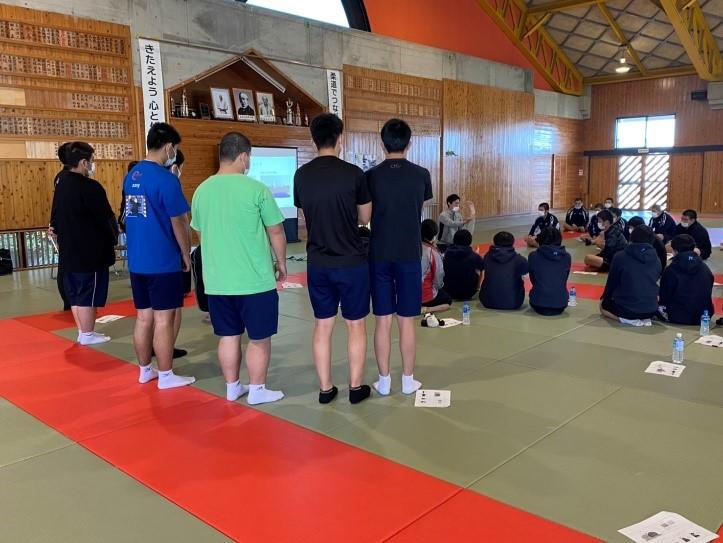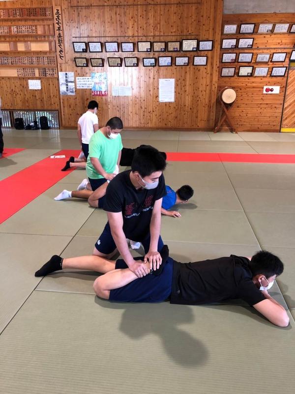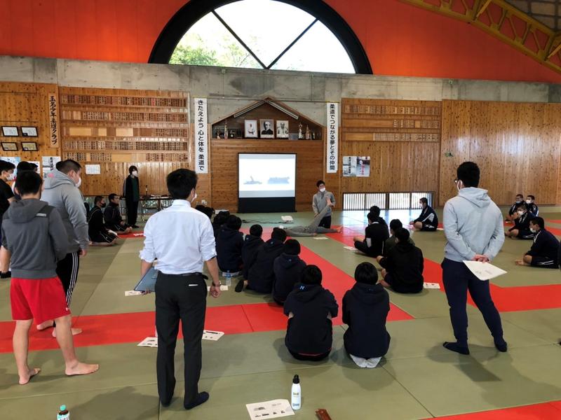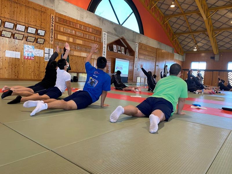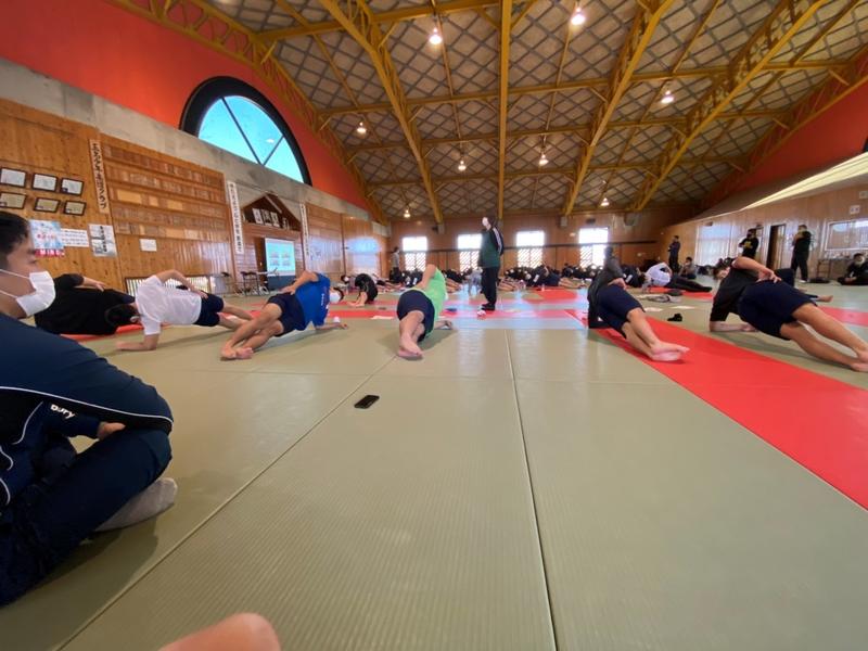 11月21日(土曜日)に玉名市武道館で開催されたトレーニング講習会に参加させていただきました。これは、熊本県高校柔道強化事業の一環で行われたもので、熊本セントラル病院理学療法士の吉元一馬先生ご指導のもと、モビリティ、バランス・コーディネーション、ブライオメトリックス、ラインの各トレーニングを実践しながら受講しました。この講習で学んだことを生かして、ケガをしない体、力負けしない体づくりに励んでいきたいと思います。