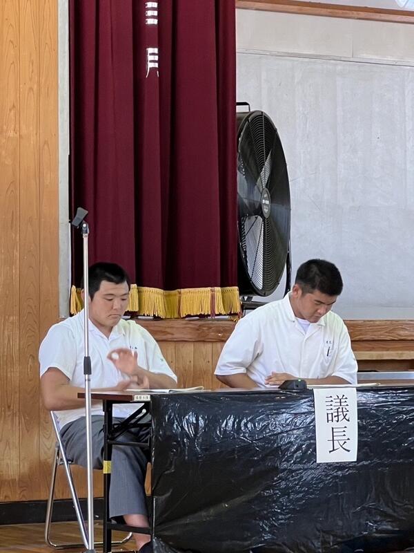 先日、本校体育館で生徒総会があり、柔道部主将の北川良唯君(3年機械科、人吉三中出身)と東幸生君(3年機械科、錦中出身)が議長に選出され、立派に議事進行を務めました!