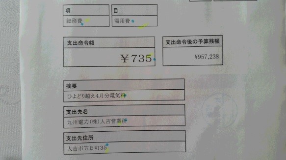 途中に2箇所外灯があるものの、夜はとても暗く、生徒総会でも外灯増設の要望が出ていました。その道を使っているのは本校生がほとんどだからということでしょうか、外灯の電気代は何と本校が支払っています。4月分は735円でした。