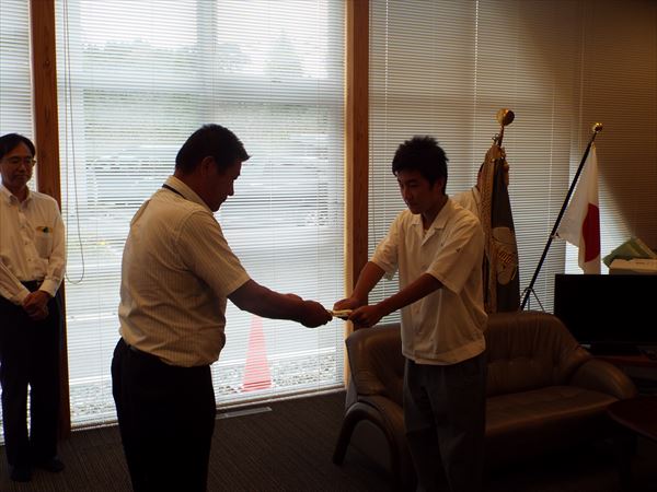 アイディアロボット全国大会の出場と電気科2年園田さんが海外インターンシップへの参加に向けて、同窓会から奨励金が授与されました。10月23日~29日の間、県内企業の海外進出先(アメリカ)でのインターンシップ、企業視察、アメリカの高校生との交流などが行われます。多くのものを、学校外での活動から学んでくることと思います。また、11月5日・6日にアイディアロボット全国大会が石川県であり、溶接部ロボット班が毎日、夜遅くまで製作に励んでいます。今回の大会も活躍してくれることを期待しています。