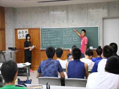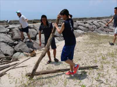 宿泊研修では、体育大会、文化祭、情報モラルについての話し合いや、学習会、海岸沿いの漂流物を撤去するボランティア活動を行いました。朝の集いでは、旗係、体操係、団紹介係と、それぞれが仕事をしっかりとこなしました。特に、団紹介を行った生徒会長の恒松君は、長い文章を暗記し、堂々と球磨工業高校をアピールできました。研修以外にも、海水浴等で親睦を深め、充実した研修となりました。この研修で学んだ事や深めた絆で、これからの生徒会活動に取り組んでいきたいと思います。