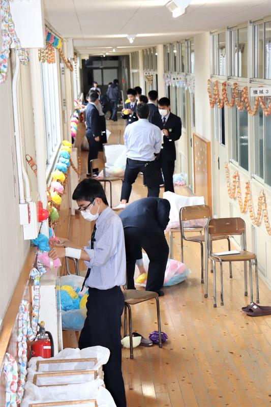 生徒会執行部と2年生のクラス代表とで飾り付けを始めました。