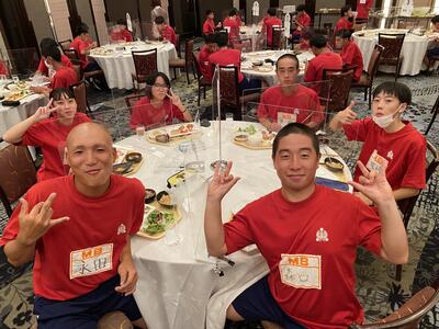 宿舎到着後は2MB中村優寿君にスタッフの皆様への感謝の言葉を述べてもらった後に美味しい夕食を摂り、今日のディズニーシー探索に向けて早めに消灯しました。