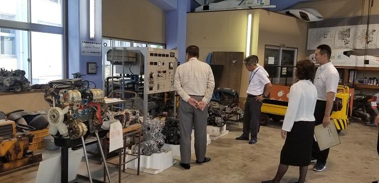 校長室において辞令交付式の後、家庭科・電気科・機械科・建築科・建設工学科・教室棟の順に学校の実習機器や授業風景を見学をしていただいた後、会議を行いました。