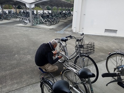 今日、H28度卒の高木弘之君のお父様が、寒い中、自転車を整備してくました。
