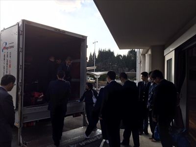 荷物を事前にトラックで搬送しています。