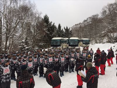 ホテル到着後、スキーウェアに着替えて、すぐにスキー研修の開校式を行いました。式後、各インストラクターの指導のもと、スキー研修が開始しました。短時間ではありましたが、天候も良く、生徒たちもほとんどが初めてのスキー体験でしたので、今夜はゆっくり休んで、明日の研修に臨んでほしいと思います。