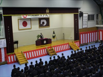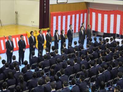 本日、入学式を行いました。あいにくの雨天でしたが、新入生は晴れ晴れとした笑顔で式に参列していました。自ら学ぶ姿勢や友人作り・3綱領の剛健誠実・自主自立・好学敬愛を目標にして、明日からの授業を頑張ってほしいと思います。