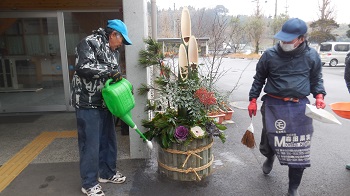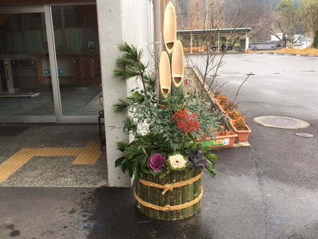 12月16日(土)午前中に本校玄関に、人吉市シルバー人材センターの方々によって、一足早く正月を感じさせる門松が飾られました。