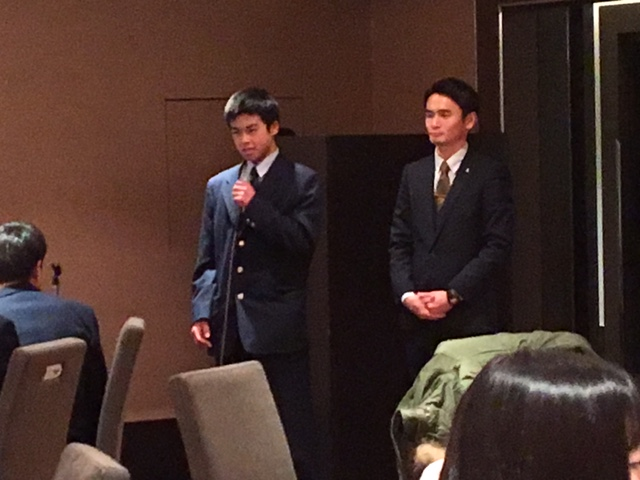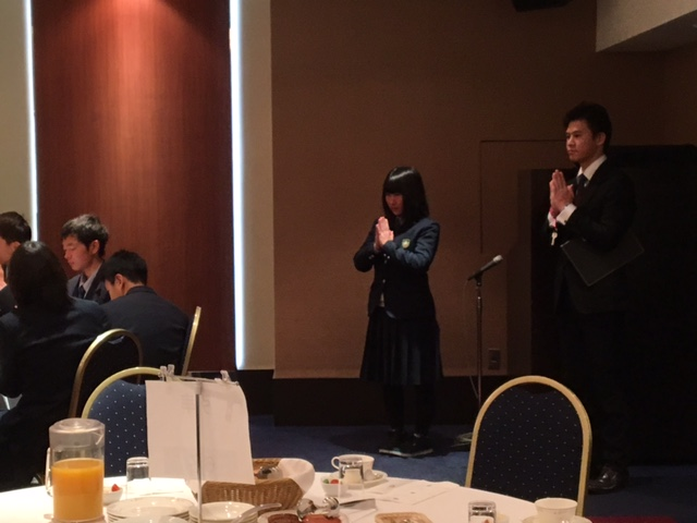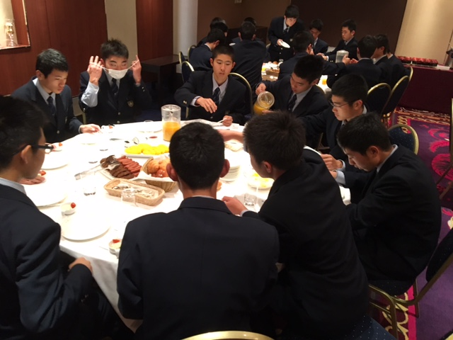朝食会場は2箇所あり、1MB右田くんと1C尾方さんが朝食の挨拶をしました。