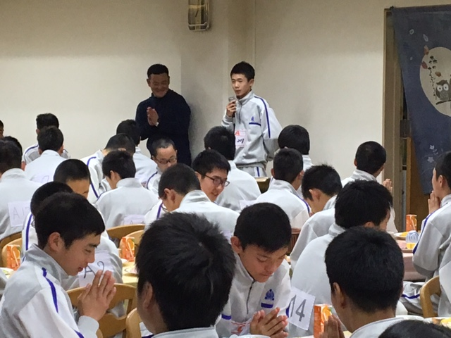 北川くんから「今日(1/17)は阪神・淡路大震災が起きた日です。震災当時のことを考えて、感謝しながらいただきましょう。」と挨拶しました。
