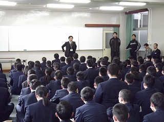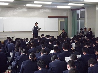 短い冬休みも終え、3学期の始業式が行われました。早朝より元気に登校してくる生徒見て、3学期も頑張ろうという気持ちになりました。校長講話では、本校の先輩が大活躍した箱根駅伝のことと本校の校訓について、もう一つは今日から始まる3学期について話されました。生徒たちは真剣な眼差しで話を聞いていました。3年生も登校してくるのはあと少しとなりました。有終の美を飾って欲しいと思います。1・2年生については、次の学年に進むための準備をしっかりとして欲しいと思います。