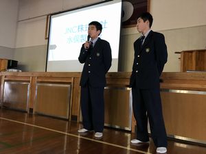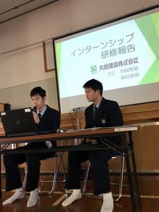 報告会では、プレゼンテーションソフトを使って、分かりやすく発表をすることができました。また、1年生も参加し、来年のインターンシップに向けて事前学習を行いました。