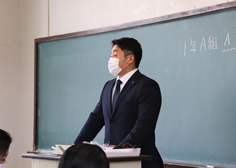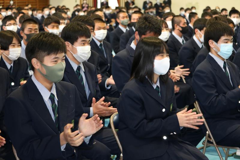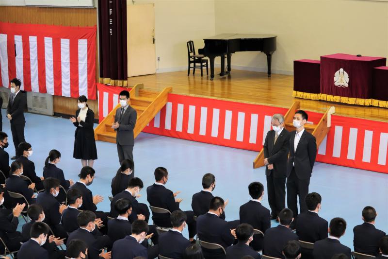 校長挨拶、教務部・進路指導部・生徒指導部からのお話を聞き、