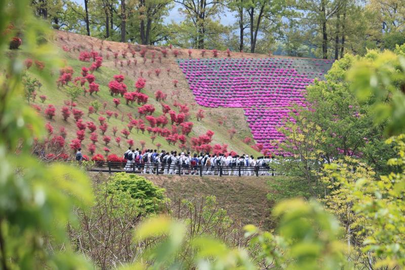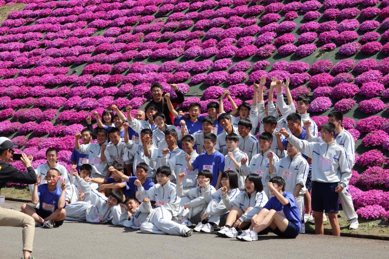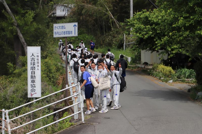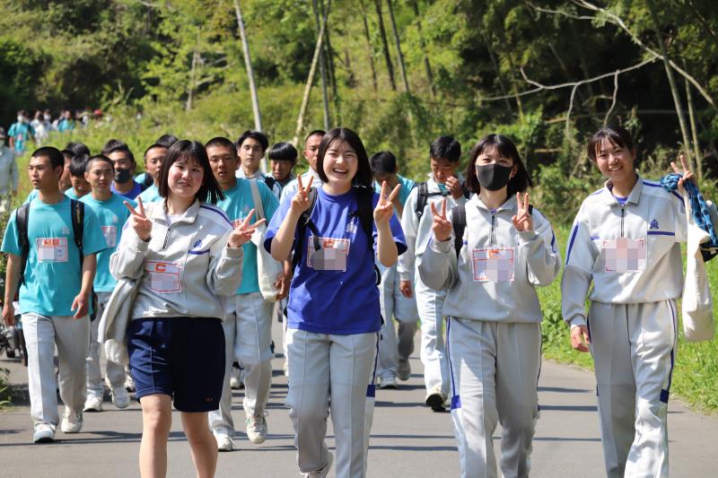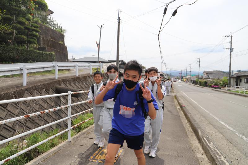 全生徒、全職員で山江村にある丸岡公園を目指します。