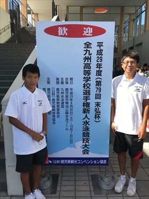 9月30日(土)鹿児島県の鴨池公園水泳プールにおいて「平成29年度第79回末弘杯全九州高等学校選手権新人水泳競技大会」が行われ、本校水泳部から1年生2名が出場しました。